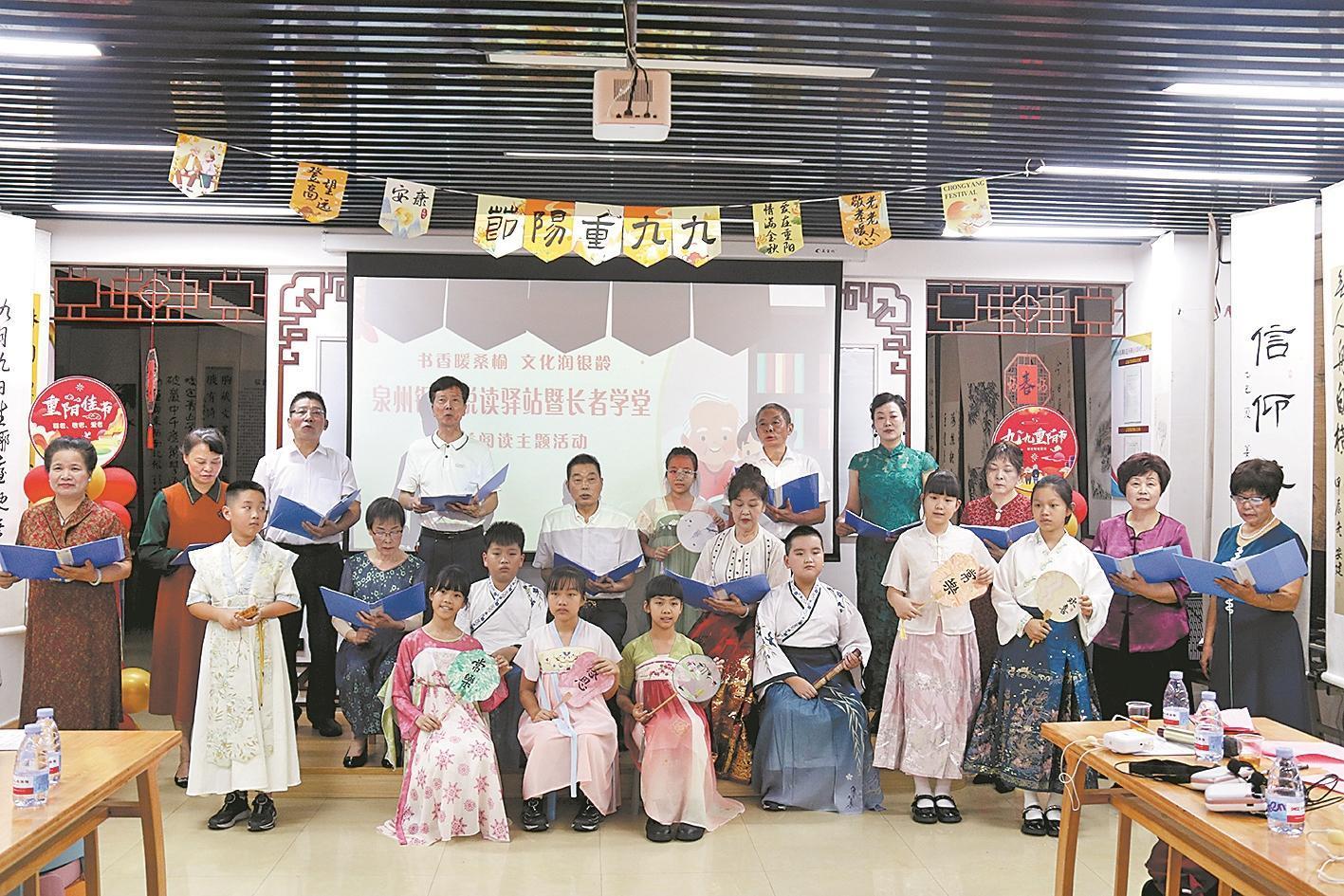 圣湖社区老少共读古诗经典 ■融媒体记者 陈玲红 通讯员 黄文彬 文/图 昨日下午,“书香暖桑榆 文化润银龄”泉州银童驿站老年公益阅读活动携着浓浓秋意与书香,先后走进丰泽区泉秀街道华丰社区和东湖街道圣湖社区。活动以阅读为桥,串联起理论学习的深度与文艺表达的温情,为社区老年朋友呈现了两场形式各异、精彩纷呈的精神文化盛宴。本次活动由市委宣传部、市委老干部局、市委文明办、市民政局、市侨联、泉州市慈善总会、泉州晚报社联合主办。 华丰社区:古诗雅韵传承经典 下午2时40分许,华丰社区的活动室内座无虚席,氛围庄重而温馨。活动伊始,社区党委书记叶碧红带领居民开展理论学习。现场听众神情专注,不时低头记录,理论之光在安静的阅读与聆听中静静流淌。随后的古诗赏析环节,叶碧红不仅讲解了诗词的意境与背景,更带领大家齐声诵读。从《重阳席上赋白菊》到《九日齐山登高》,抑扬顿挫的朗诵声在室内回荡,古典诗词的韵味令人回味。 圣湖社区:老少同台歌声嘹亮 当日下午4时,圣湖社区的活动拉开帷幕,气氛活泼热烈。社区银发合唱团一曲《最美不过夕阳红》,歌声浑厚悠扬,尽显长者风采;紧接着,孩子们用清脆稚嫩的童声唱响《有你就幸福》,纯净的歌声表达对长辈的感恩。这一老一少的同台演绎,赢得现场阵阵掌声。随后的诗朗诵环节,从抒写母爱的《游子吟》到描绘山居秋色的《山居秋暝》,抑扬顿挫的朗诵声让人沉浸其中。活动间隙,牙博士口腔医院的医生为居民带来健康知识讲座,受到大家好评。 |