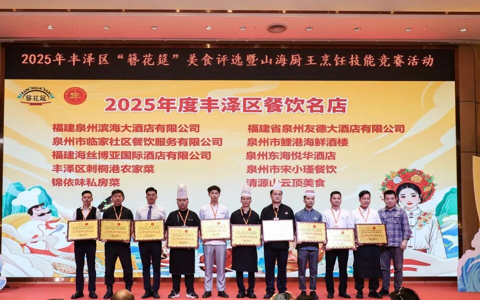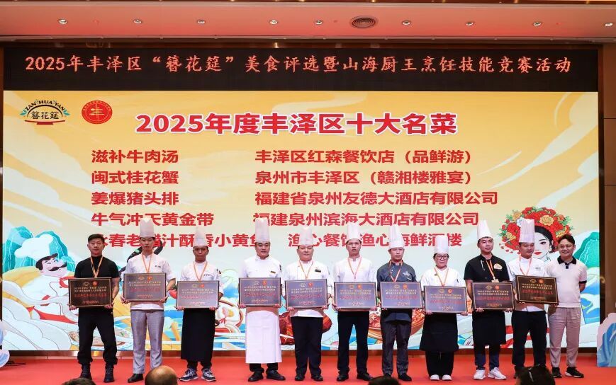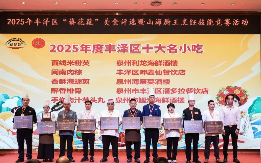 10月30日,丰泽区“簪花筵”美食评选暨山海厨王烹饪技能竞赛颁奖大会在滨海大酒店圆满落幕。本次活动以“传承闽菜技艺,创新美味佳肴”为宗旨,深度挖掘“簪花筵”文化精髓,通过美食演绎与烹饪技能竞技,既展现了丰泽美食的独特风味与创新理念,也为餐饮从业者搭建了交流学习的平台,助力丰泽区餐饮行业高质量发展。