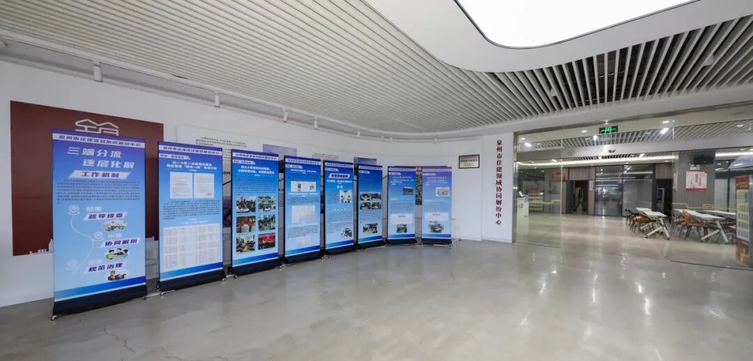综合服务大厅 “标讯先行”是产业园区开展系列护航服务的缩影。目前,园区构建了“业务对接、金融支持、人才赋能、政务直通、技术赋能、商务配套”六大服务平台,覆盖企业全生命周期。政务服务侧,设立建筑企业高质量发展专窗和标准化政务窗口,实现“园区事园区办”;落地泉州市住建领域协同解纷中心,累计成功调解纠纷726件。金融侧,依托“政银企”机制,联动中小微企业融资促进中心和泉州银行、农商行等金融机构下沉服务,精准破解融资痛点,稳固产业链竞争力。