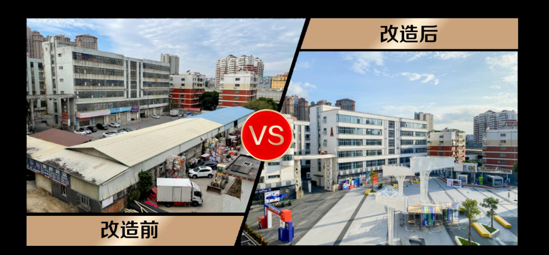 产业园改造前后对比 空间焕新同步推进“腾笼换鸟”。园区有序清退小作坊、大宗物流等低端业态,靶向引入建筑服务产业。依托“龙头牵引+校地协同+项目驱动”三维招商,中建三局、中建科工等7家央企及340家上下游企业快速集聚,涵盖勘查、设计、咨询、施工、检测、监理、劳务、建材的全链条生态成型。