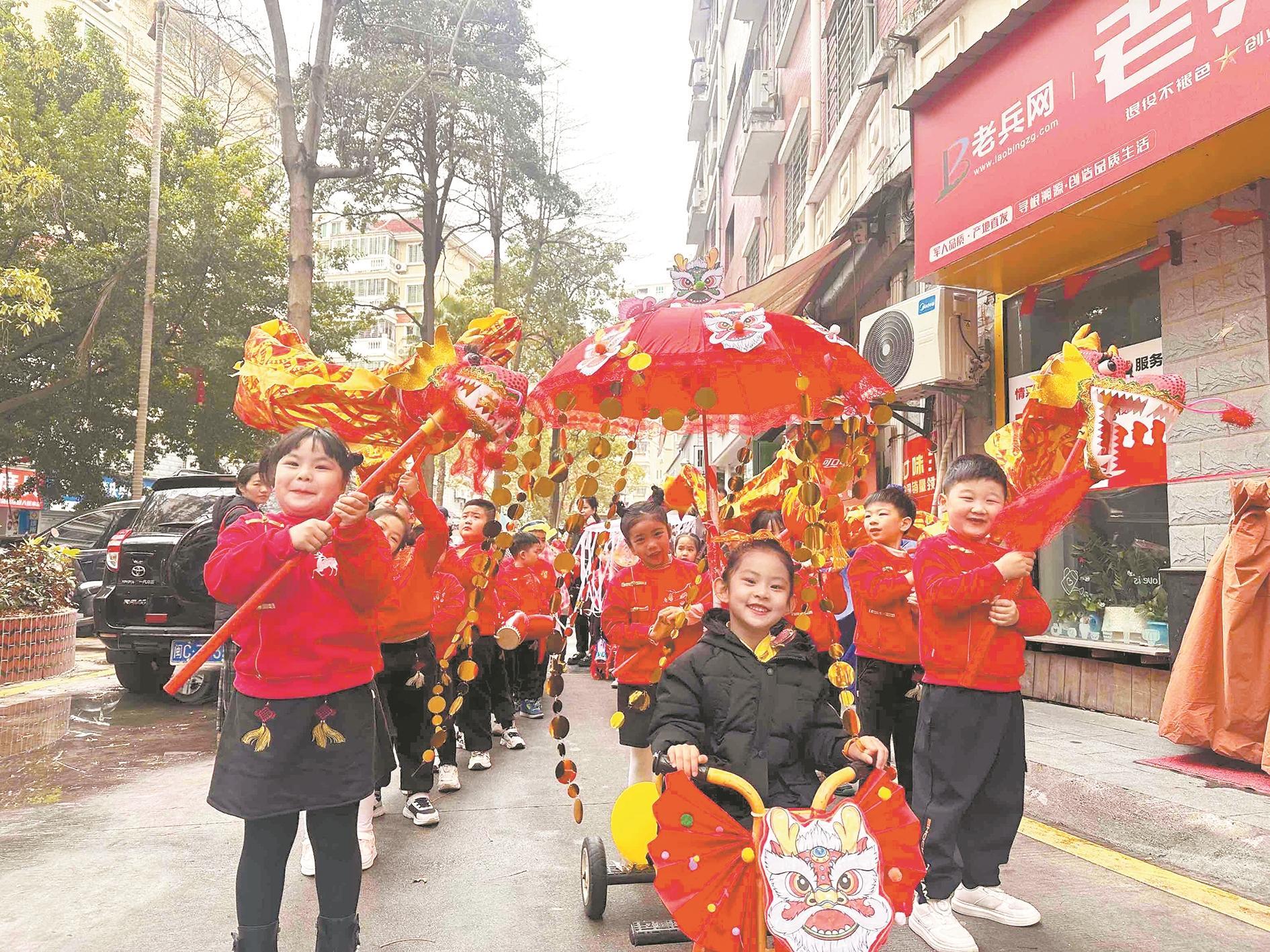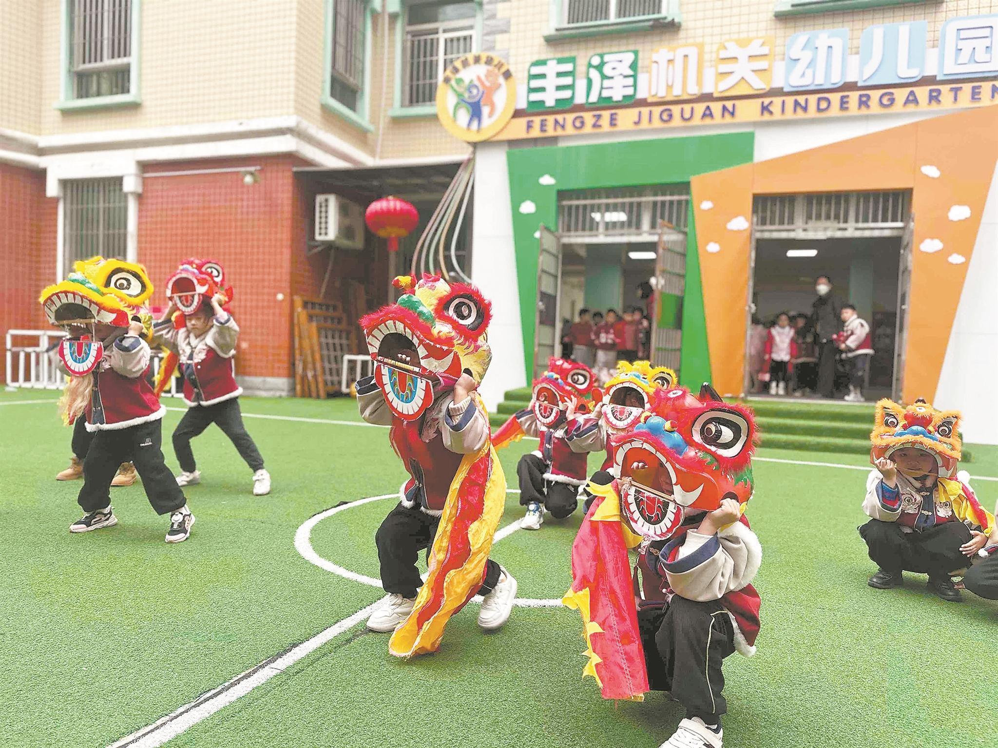 孩子们的非遗街秀趣味横生 早报讯 (融媒体记者龚翠玲 通讯员蔡国清 文/图)元宵佳节,泉州市各幼儿园开展了丰富多彩的节日活动。非遗街秀、逛庙会……不少幼儿园将传统节日文化与幼儿趣味体验深度融合,让孩子们在欢乐的氛围中领略中华传统文化的魅力,在体验中收获成长。 丰泽机关幼儿园丰盛园区开展了一场非遗街秀嘉年华活动。活动以泉州古代民俗为蓝本,组织大班、中班幼儿组成八大非遗方阵。盛装打扮的孩子们沿社区街道行进,同步进行舞龙舞狮、火鼎公婆、拍胸舞、提线木偶、手偶等表演,并与沿途观众互动。活动所用的道具都是孩子和老师们用心制作的,充满了巧思。“这是小区幼儿园的孩子吗?真是太棒了!”……许多居民驻足围观,并不时称赞。 丰泽区实验幼儿园潘山分园举办了一场以“欢腾小马闹元宵 萌宝喜乐贺团圆”为主题的庙会活动。当天,幼儿园内设置了融合美食、游戏、手工等多元特色的摊位。缤纷美食区中,元宵圆、糖葫芦、玉米杯等近10种特色小吃,让孩子们尽享美食;快乐赶马、打败年兽、福马套圈等趣味游戏,让孩子们玩得兴高采烈;画灯谜、挂福气、做手链等各类手工活动,让小朋友们能够用自己的方式表达节日祝福。 泉州幼师附属幼儿园开展“萌娃闹元宵,非遗乐满园”节日活动。从花灯映趣到游园寻乐,从巧手做汤圆到民俗活动,孩子们在沉浸式体验中领略传统节日的别样魅力。洛江区第二实验幼儿园将于3月4日开展亲子庙会暨元宵节活动。届时,庙会现场设置游戏区、美食区、技艺区三大主题区域。