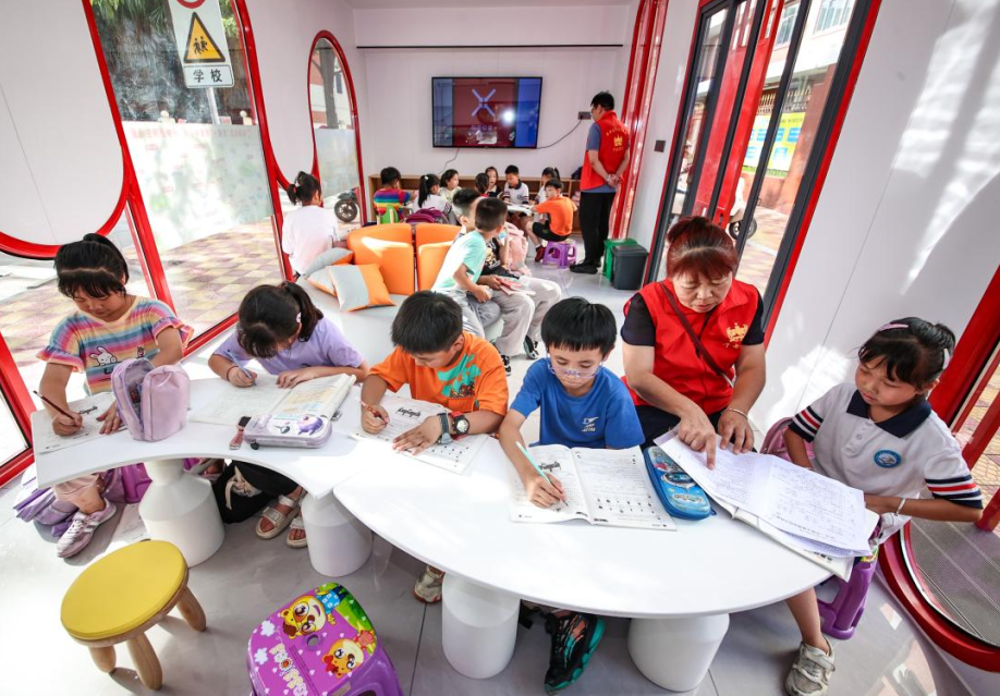灯星社区中医理疗馆为居民提供免费足疗服务 作为典型的安置房片区,灯星社区老年人口集中,公共服务需求多样。社区紧扣居民实际需要,盘活近2500平方米的闲置空间,因地制宜打造了涵盖医疗康养、文体娱乐、便民服务等功能的各类特色空间40余个。 这样的变化,正在丰泽区一个个社区里悄然发生。针对运行中部分阵地功能冗余、空间利用低效的短板,丰泽区开展全域闲置资源专项摸排,整合社区、小区各类闲置空间近3万平方米,压缩绿色网吧等低频功能区100余个,合并功能交叉阵地22个,采取“拆墙并院”等方式扩容中医理疗馆等高频阵地60余个,将社区的办公区域占比从平均35%压缩至10%左右,真正把空间还给居民、让服务回归本真。 深耕服务——从“面上覆盖”到“点上聚焦” 让社区“人情味”更重 下午4点,铭湖路湖心实验小学围墙边,一间红白相间的清新驿站准时亮灯。30多平方米的小屋内,二三十名小学生或伏案写作业,或翻看绘本,几名身穿红马甲的志愿者家长在一旁轻声答疑,画面安静而温馨。