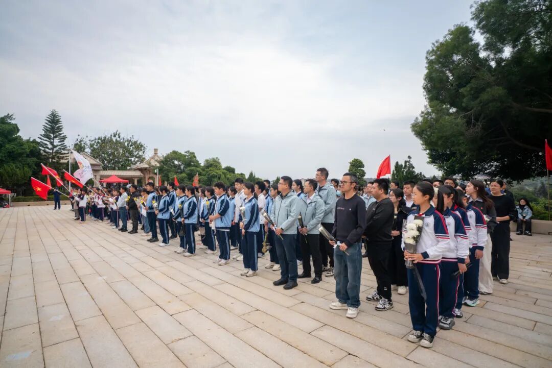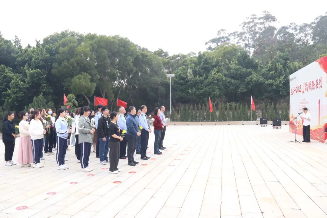 现场,全体人员齐声奏唱国歌,向革命烈士默哀一分钟,并依次敬献鲜花,寄托对英烈的崇高敬意与无尽哀思。