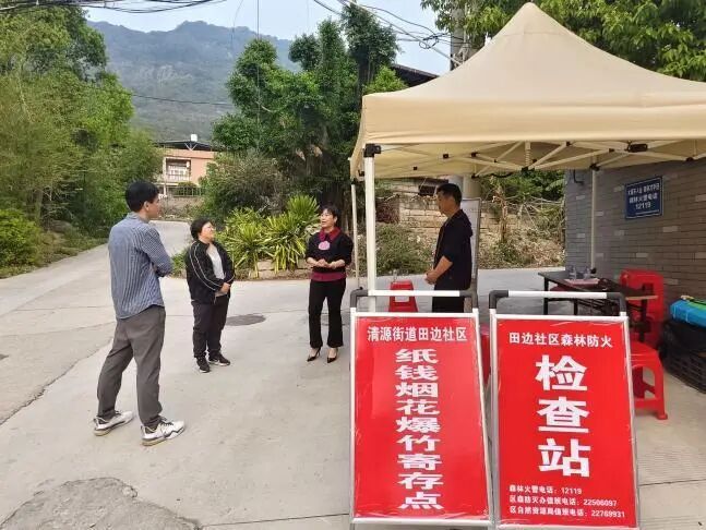 清源街道在清源、后茂、环山、田边等4个有林社区,科学设置12个森林防火临时检查站,覆盖清源山所有进山路口和集中墓区。街道、社区干部、护林员、党员志愿者等125人全员到岗、定点值守,对上山车辆和人员逐一开展防火安全提醒,严禁携带火种、纸钱等进入林区。“您好,请问有没有携带打火机、纸钱?”这句话,值守人员一天要说上百遍。现场秩序规范有序,文明祭扫蔚然成风。