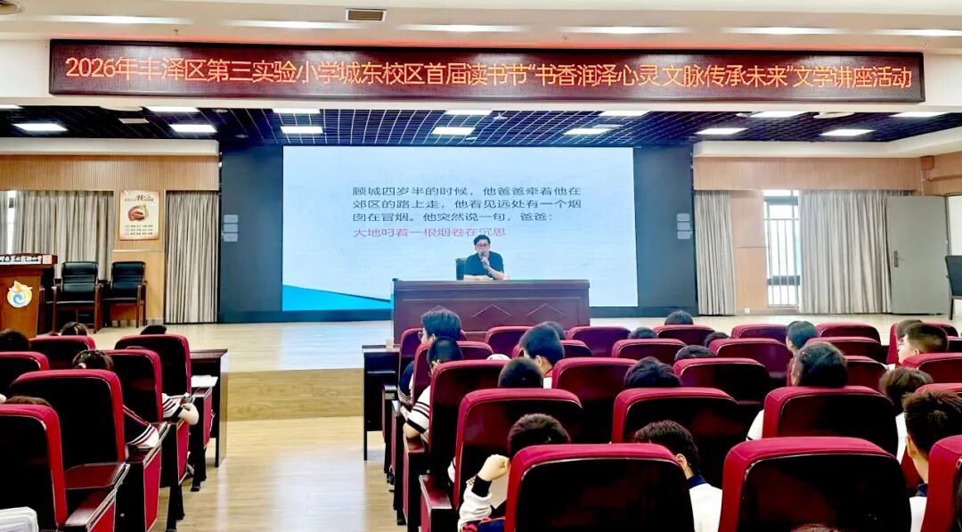 当日下午,重点活动——“书香润心灵 文脉承未来”文学讲座精彩开讲,特邀福建文学杂志社编辑部主任、中国作家协会会员韦廷信,为三至六年级学生代表及文学社成员授课。韦老师结合创作经历,用童心视角讲解童诗灵感、意象捕捉与朗读技巧,引导学生从生活点滴中发现诗意。现场互动热烈,学生积极提问,在交流中感受文字魅力,激发创作热情。